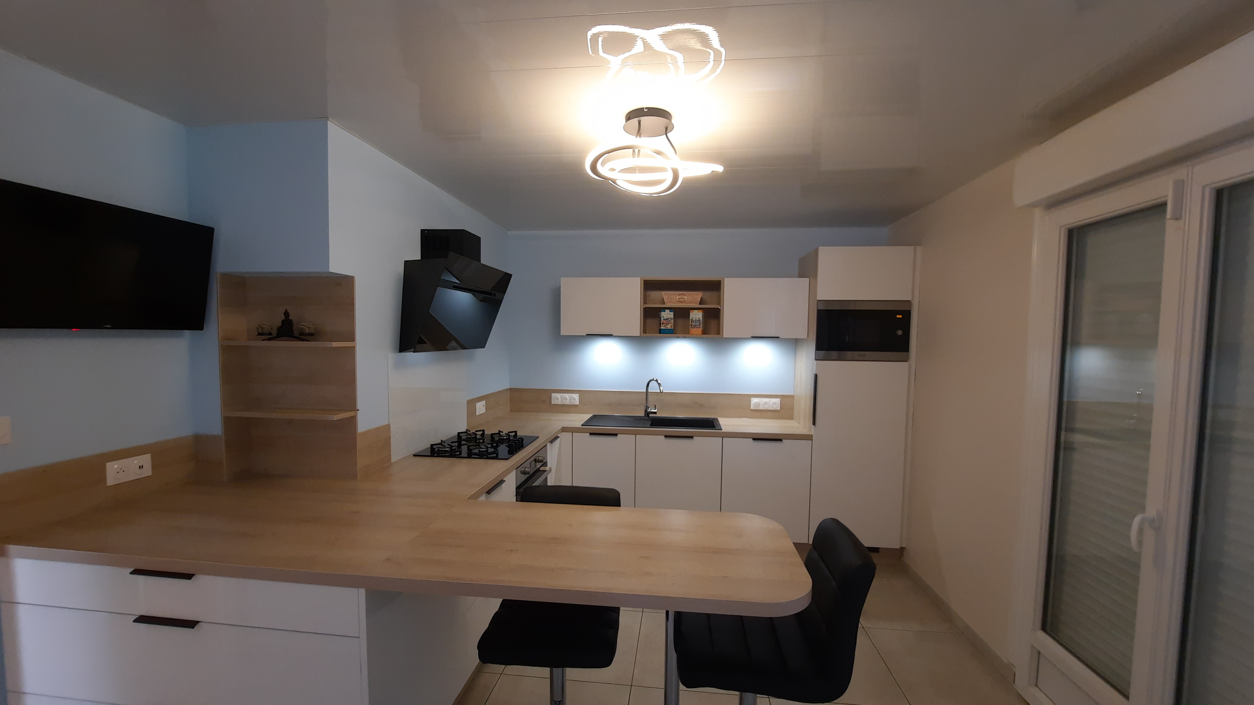 Posté le 27/12/2022 à 08:07"Accueil pro, je n'ai pas attendu de trop et j'ai eu rapidement les bons renseignements. Suivi du projet impeccable par Matthieu, livraison dans les délais (pas de casse) et montage par Julien sans Pb. C'est ma deuxième cuisine chez CUISINELLA, la première en 2009 et celle-ci pour une location je n'ai pas hésité. J'ai également apprécié les conseils pour la réalisations, le résultat est conforme au projet en tous points. Sur la photo, la porte du milieu entre ouverte c'est un lave vaisselle petite capacité, donc c'est bien monté, plus la peine de me le signaler !"