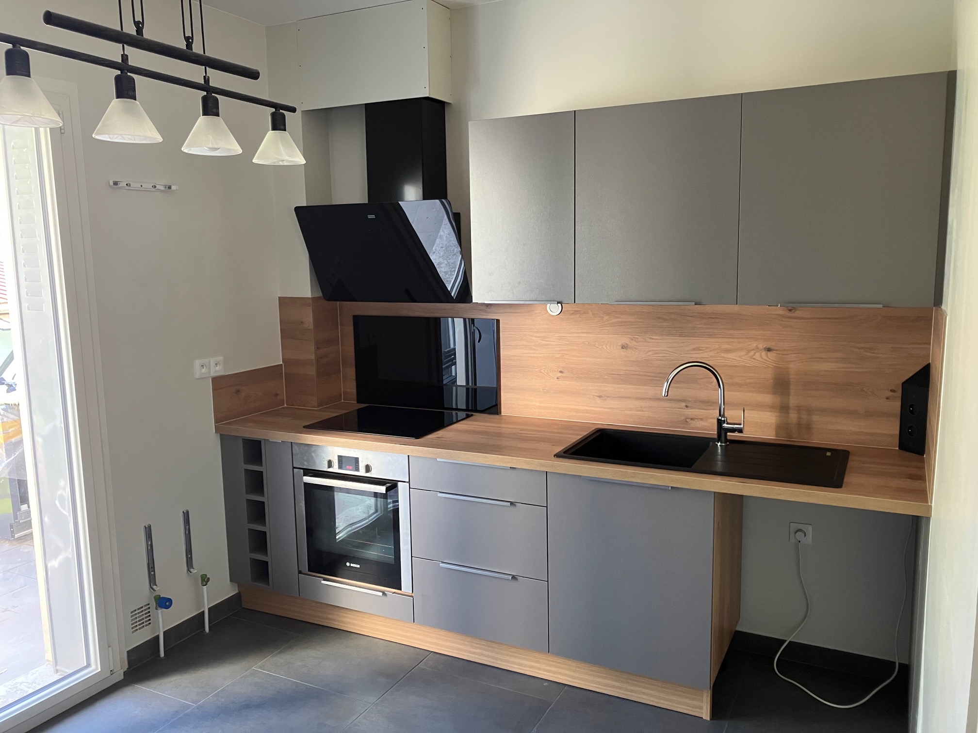 Posté le 12/04/2021 à 12:53"Notre cuisine est posée depuis mai 2020. Il y a eu du retard à cause de la COVID-19 mais nous sommes satisfaits du résultat et des propositions d'aménagement qui nous ont été faites par Fabrice. Malgré la taille modeste de la cuisine ainsi que la présence d'une porte-fenêtre et d'un radiateur limitant la pose de meubles, nous avons tout de même de nombreux rangements et l'électroménager attendu, ceci dans le respect de notre budget (environ 10000€ hors frigo et plaques que nous avions déjà). L'esthétique a également été déterminant dans notre choix puisque nous n'avons pas trouvé d'équivalent chez les autres cuisinistes démarchés. La hôte et le lave-vaisselle étaient défectueux à l'arrivée mais monsieur JAN a fait le nécessaire pour les remplacer. Après presqu'un an d'utilisation, RAS, hormis un joint qui s'est défait et que Cuisinella a refait dans le cadre du service après-vente (un bon point pour nous car l'après-vente est parfois délaissé par certaines enseignes mais ce ne fut pas le cas nous concernant)."