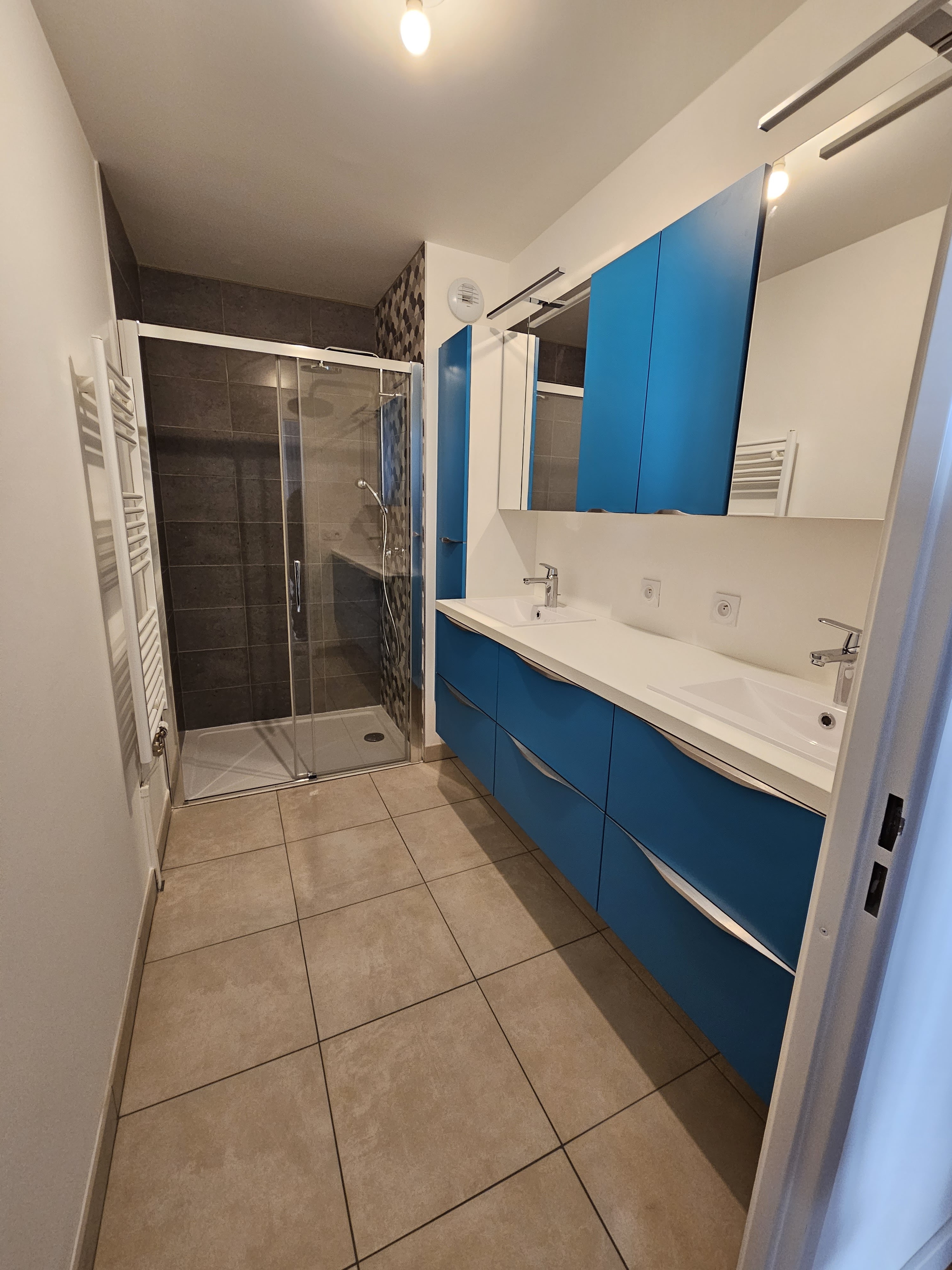 Posté le 04/10/2018 à 20:26"Après l'installation d'une cuisine et d'un dressing ,je termine par une salle de bain qui une fois de plus est une grande réussite.Je remercie très sincèrement Claire qui a réalisé mes 3 projets.Disponible et souriante nos rendez vous ont toujours été un agréable moment.Je remercie également les artisans Serge et Nicolas qui ont réalisé un travail de grande qualité.Vraiment très pros,c'est la perfection.Je recommande sans hésiter Cuisinella Bourg la Reine où toute l'équipe est aimable et sympathique .Merci pour tout,je suis plus que ravie."
